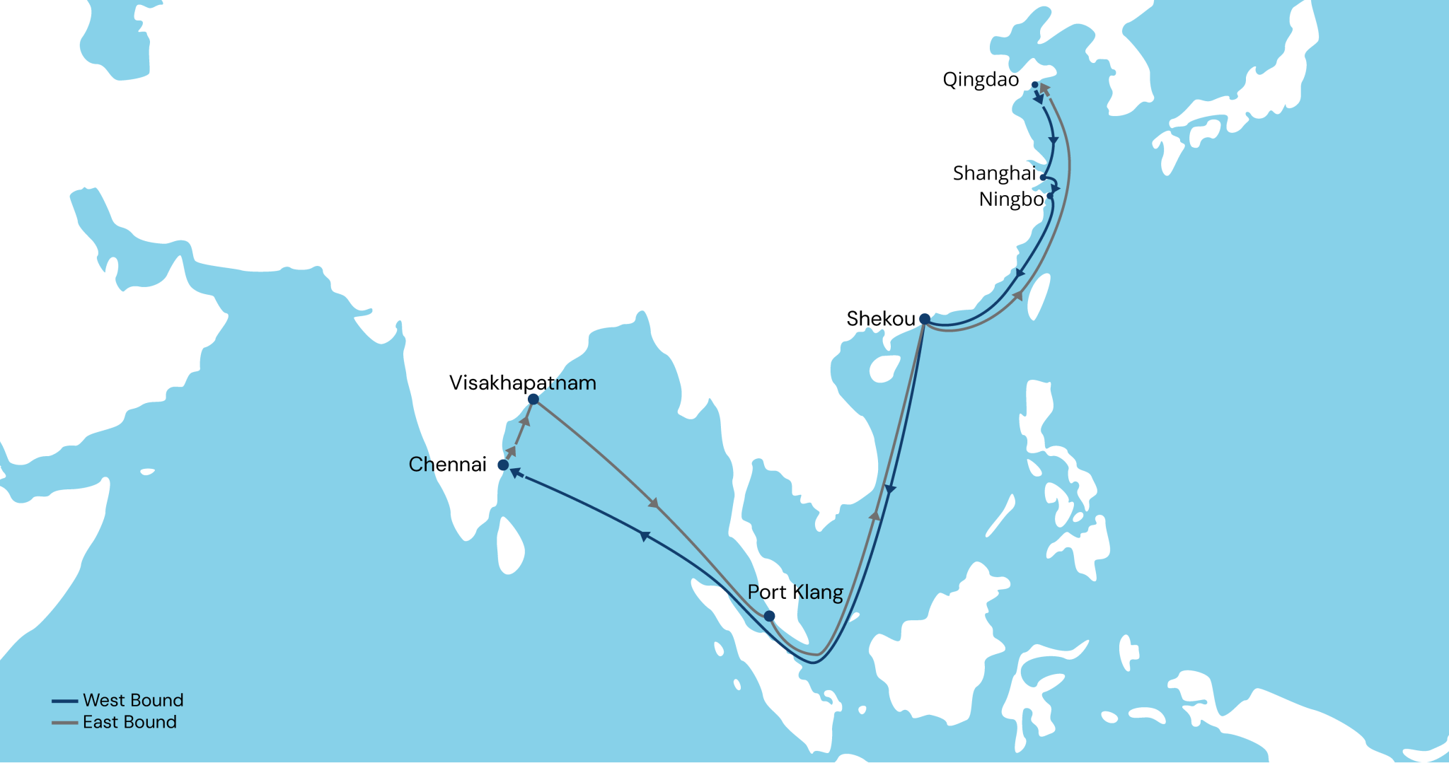 The FIX 1 service offers a direct service from ports in China to the east coast of India. It aims to offer shippers a diverse range of options for their cargo transportation needs by providing one of the most efficient routes connecting China and India. In addition to swift and reliable connections, our team’s unparalleled expertise and commitment to excellent customer service ensure that customers can be confident their shipments will arrive as planned. Consider our FIX 1 service for your next shipment and join the growing ranks of SeaLead customers who appreciate straightforward and reliable cargo transportation.