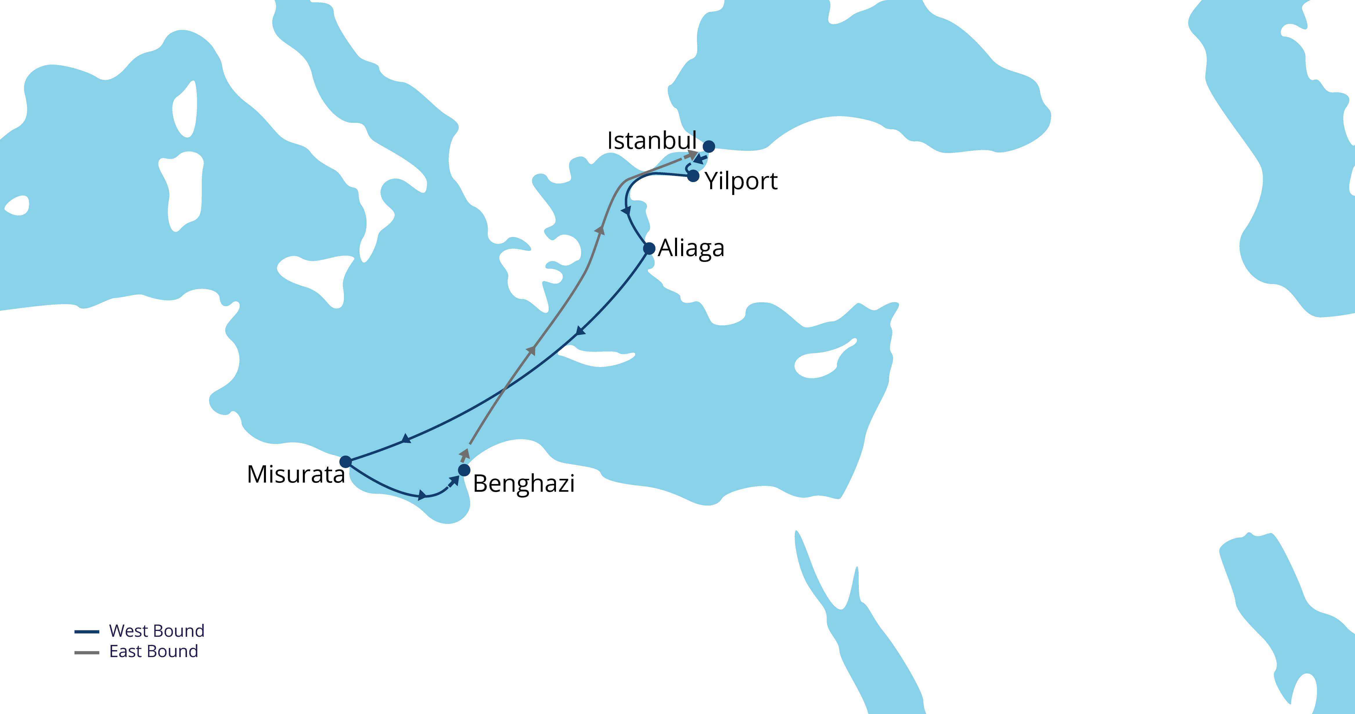 Experience efficient and dependable cargo transportation with the Mediterranean Express Service (MES), connecting Türkiye to Libya. Our modern fleet ensures direct shipping between Istanbul, Yilport, Aliaga, Misurata, and Benghazi. With a dedicated team providing exceptional customer service, we make your shipping process seamless and stress-free. Trust the Sea Leads Mediterranean Express Service for all your container shipping needs.